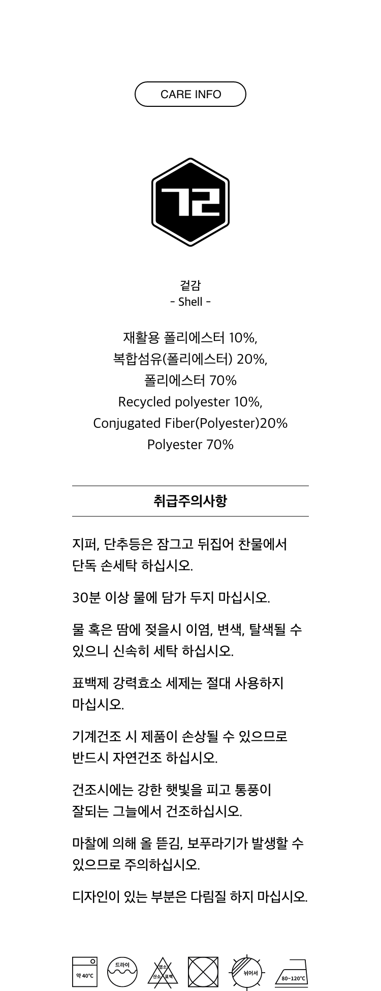 - 가벼운 비를 막아주는 발수 가공 (Water-repellent)