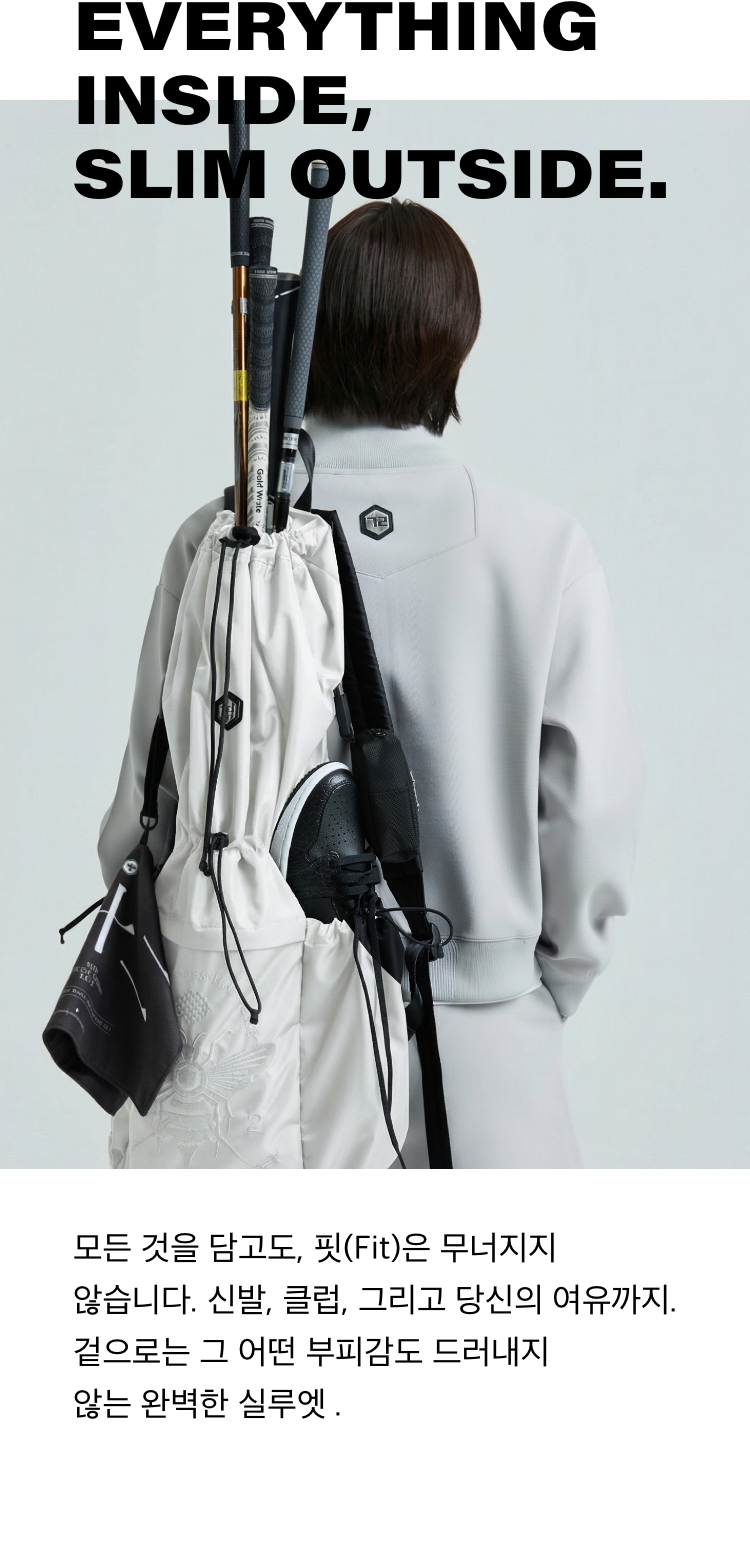 연습에 필요한 모든 것을 담고도 당신의 스타일은 여전히 완벽합니다. FLAH가 만드는 우아한 혁신. Signature Golf harf bag.