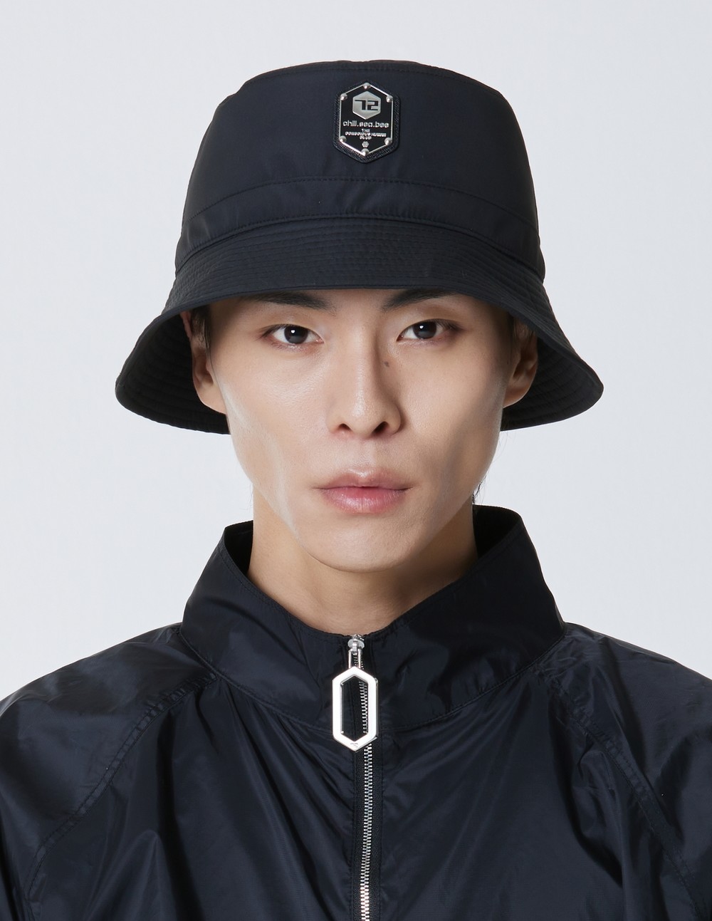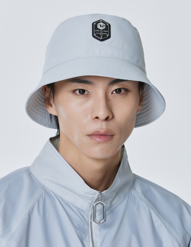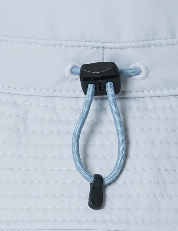 Bucket hat with bungee cord.